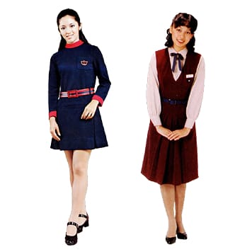 世の中は高度経済成長期。大阪万博のファッショナブルなパビリオンユニフォームが話題になり、企業もユニフォームをブランディングの重要な要素と捉え始めました。当社は金融機関や百貨店を中心としたオフィスユニフォームを展開。著名デザイナーとコラボしたデザインが話題になりました。