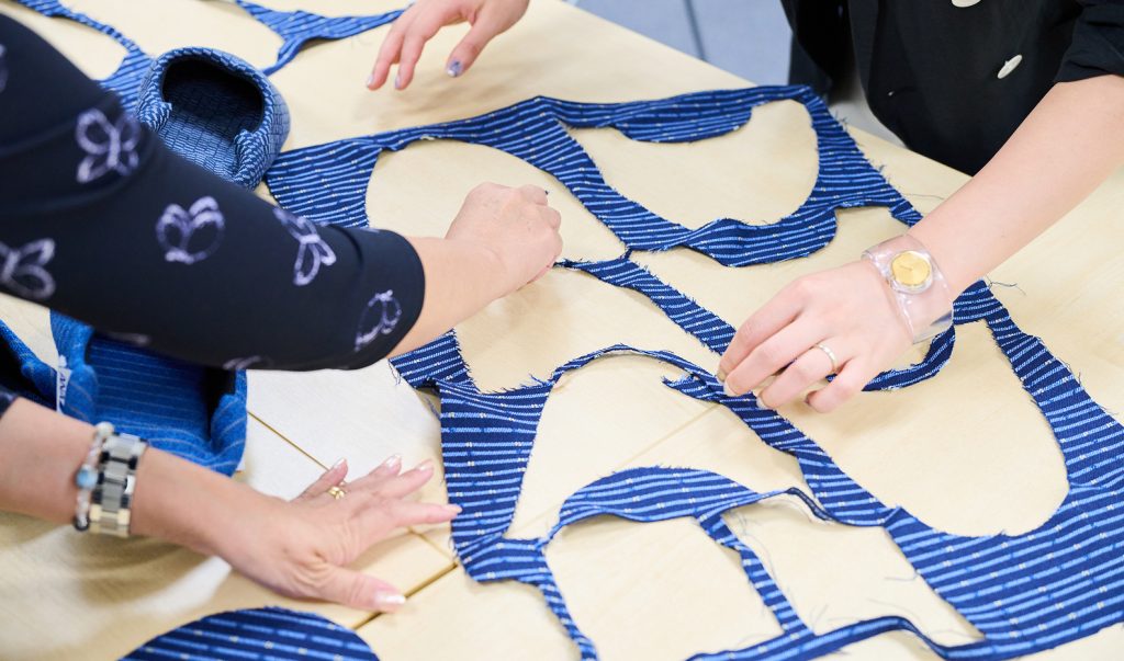 - そうですね。一度シートカバーの形に縫製してあるので、縫い目や形の違いを考慮して型を取る必要がありました。どうすれば生地を有効に使えるか、かなり研究を重ねました(笑)工場探しも苦戦しましたが、山形県の株式会社後藤様が「ANAさんのプロジェクトならぜひ協力したい」と力を貸してくださいました。職人の方々が一つひとつ型を取り、手縫いで仕上げてくださって。左右を揃えたとき、模様もピタッとつながるんですよ。