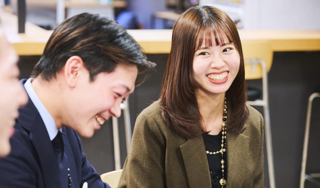 - 日々のコミュニケーションでは、雑談を大事にしていますね。僕たちの仕事は、お客様との関係づくりが欠かせません。だから社内でも会話の引き出しを増やして、コミュニケーション力を磨いてほしいなと。まぁ、僕が2人のことを好きでつい話しかけちゃうっていうのもありますけど(笑)。