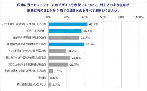 ②「ブランドカラーの活用」・「清潔感」・「デザインの独自性」が、印象に残るユニフォームの重要な要素。
