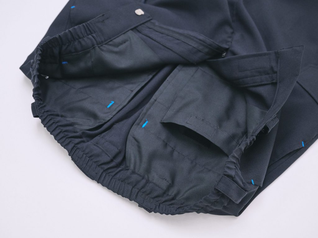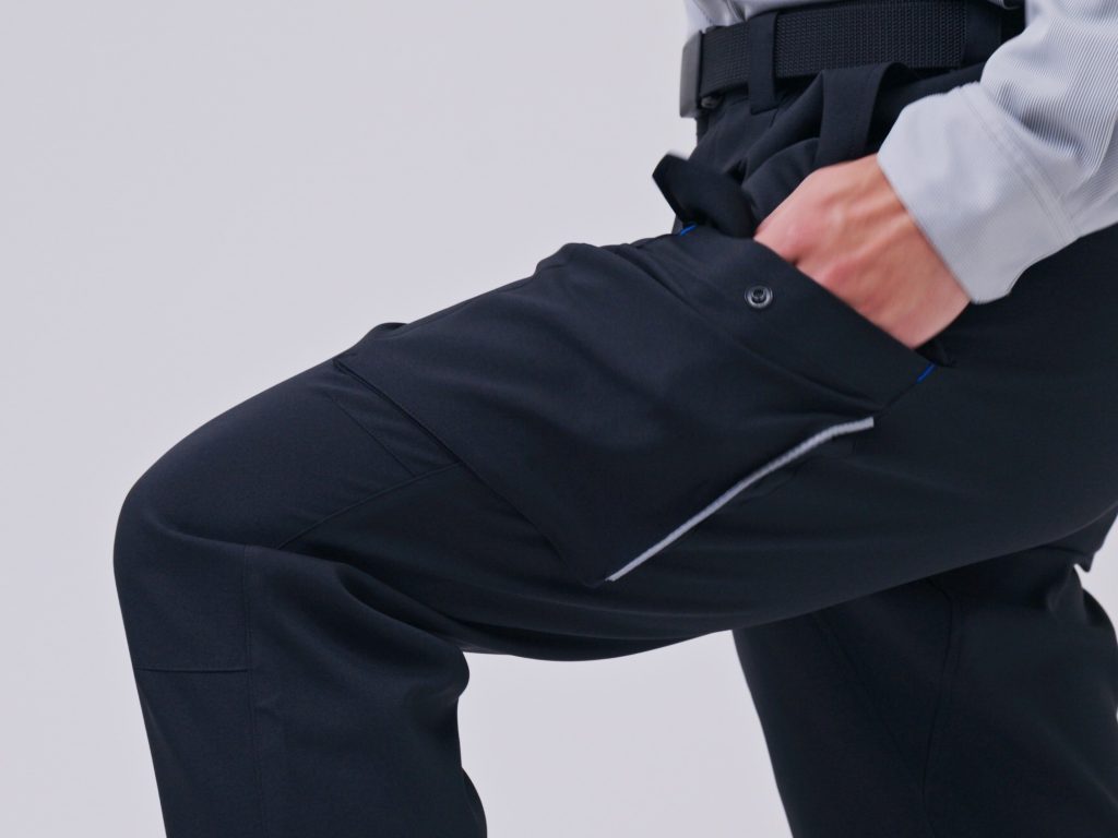 パンツは、サイドポケットの位置を工夫し、膝を曲げた状態でも使いやすい設計。